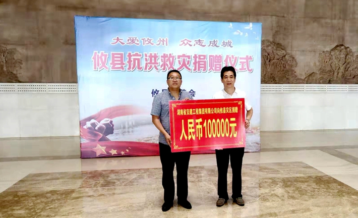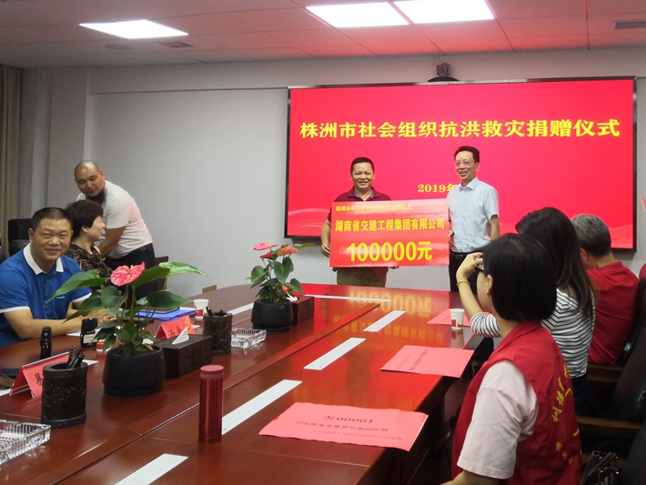 7月12日,董事長謝志方應(yīng)邀出席株洲市民政局組織的株洲市社會組織抗洪救災(zāi)捐贈活動,并捐贈壹拾萬元款項用于抗洪搶險和災(zāi)后恢復工作。公司此舉得到民政局領(lǐng)導的高度贊許,湖南省交建工程集團有限公司是不忘初心,具有高度社會責任感的企業(yè)。