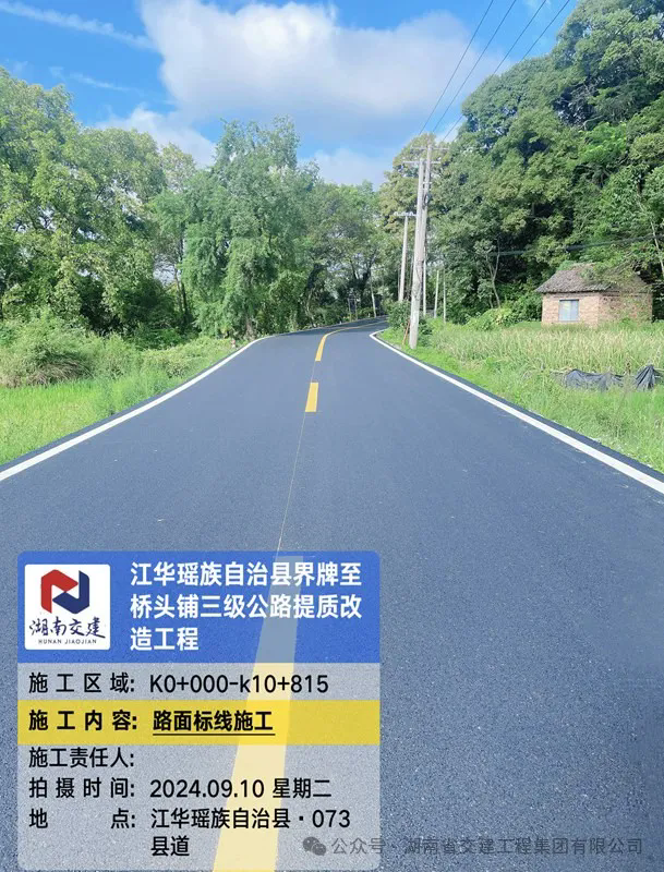 路線起點(diǎn)位于江華瑤族自治縣橋頭鋪,與G207相交,路線沿老路向西布設(shè),途徑木園村、前進(jìn)村、黃家田,終于界牌村,與X070相交,路線全長(zhǎng)10.8公里,經(jīng)過(guò)連續(xù)多日的緊張施工,項(xiàng)目已經(jīng)取得階段性成果。目前已經(jīng)完成總產(chǎn)值的98%,預(yù)計(jì)3天左右就會(huì)全線通車。