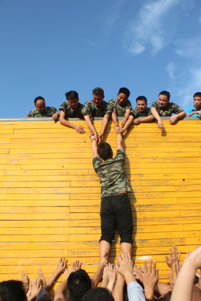 在活動(dòng)的最后一個(gè)項(xiàng)目畢業(yè)墻中,團(tuán)隊(duì)的凝聚力得到了升華。站在一堵光滑壁面且高達(dá)的畢業(yè)墻前面,退縮和畏懼慢慢占據(jù)了隊(duì)員們的心里,于是大家開(kāi)始有抵觸的情緒,開(kāi)始逃避。但是最后,在公司董事長(zhǎng)謝志方和副總經(jīng)理郭建文的鼓勵(lì)下,大家都決定齊心協(xié)力,共同克服困難。在培訓(xùn)教練的指導(dǎo)下,隊(duì)員們迅速搭起一道人梯,在一個(gè)個(gè)隊(duì)友成功翻越了畢業(yè)墻之后,人梯隊(duì)友們的肩膀已經(jīng)被踩得青一塊紫一塊甚至已經(jīng)被踩傷了,可是人梯依然堅(jiān)守在那里,沒(méi)有退縮。因?yàn)樵谒麄兊膬?nèi)心當(dāng)中有一個(gè)堅(jiān)強(qiáng)的信念在支撐著他們,這個(gè)信念就是我們所有的伙伴,如果能夠通過(guò)自己的努力戰(zhàn)勝這個(gè)障礙,飛得更高,那自己苦一點(diǎn)累一點(diǎn)甚至痛一點(diǎn)都沒(méi)有關(guān)系。隨著時(shí)間的推移,人梯隊(duì)友們肩膀上的傷痛會(huì)痊愈,但是我們相信留在每個(gè)人心中對(duì)人梯隊(duì)友的感謝和感激是永遠(yuǎn)也無(wú)法消退的,同時(shí)我們也相信,在宇通這個(gè)團(tuán)隊(duì)當(dāng)中,有這樣的人甘愿做人梯,有這樣的人甘愿付出,我們這個(gè)團(tuán)隊(duì)一定會(huì)無(wú)堅(jiān)不摧的,我們更希望在宇通這個(gè)團(tuán)隊(duì)中會(huì)有更多的人甘愿做人梯,甘愿付出,這樣宇通建設(shè)公司才能走得更遠(yuǎn)。