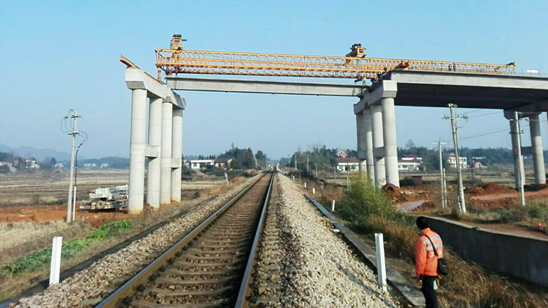精心組織下,30分鐘架橋機(jī)順利過(guò)跨